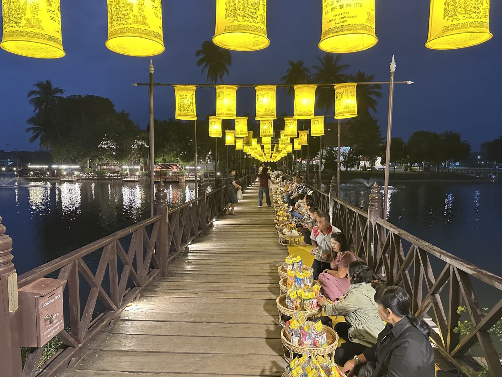 You can easily join in. You will find plenty of street vendors right next to the bridge selling small woven baskets filled with rice, snacks, and fresh flowers to offer the monks. These baskets usually cost about 50 to 100 THB. It is a very small price for such a meaningful cultural experience.